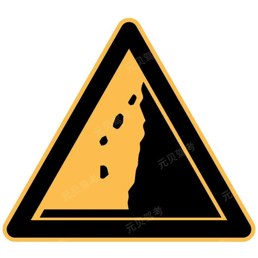 - 2. 图中所示标志的含义是提醒车辆驾驶人谨慎驾驶,注意右侧落石。