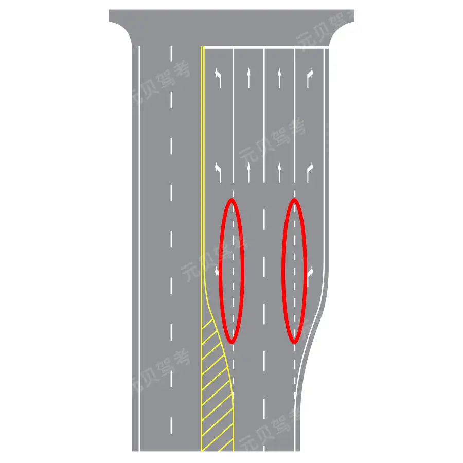 2026-01-31 05:16:12- 1. 图中圈内白色虚线提示驾驶人“此处可安全变换车道”。