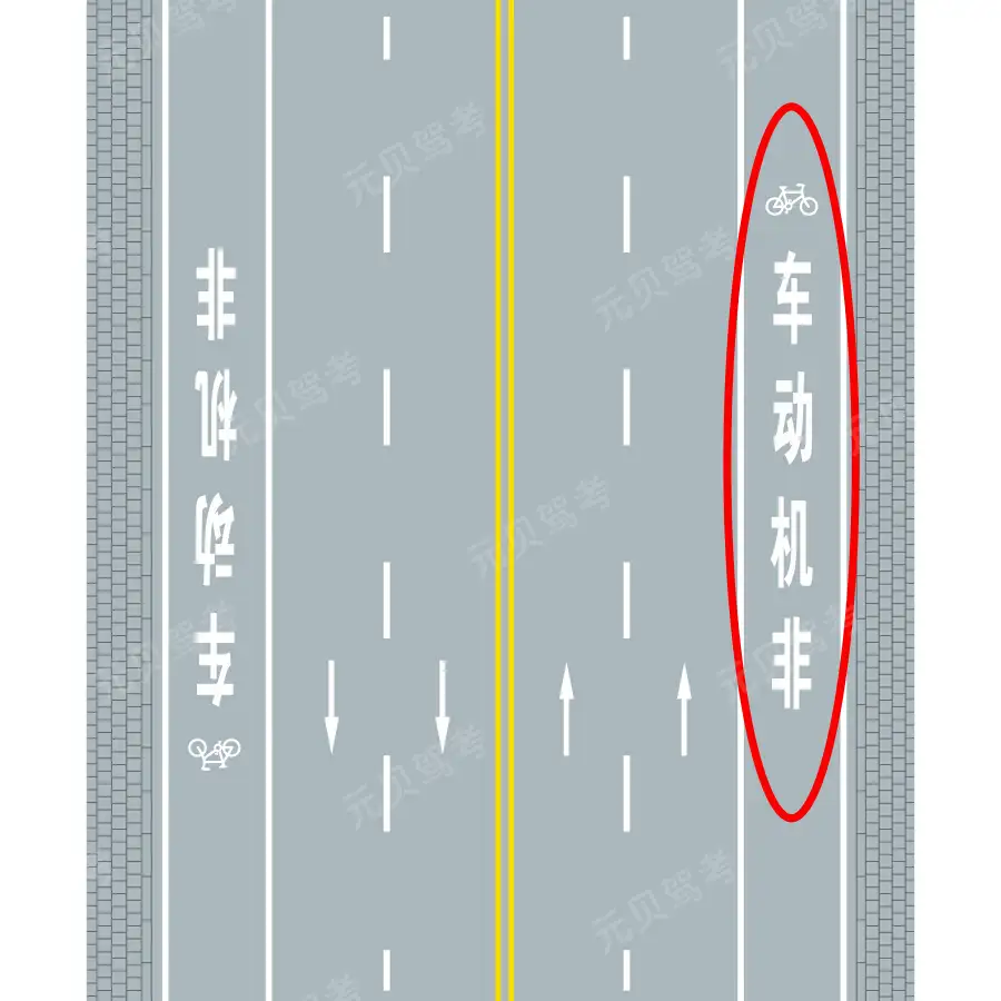 - 2. 红圈内标线表示非机动车道。