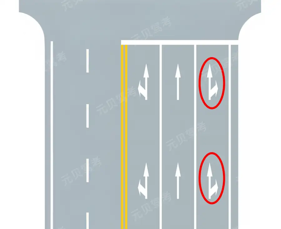 A、指示向右转弯或掉头B、指示直行或右转弯C、指示直行或向右变道D、指示直行或掉头